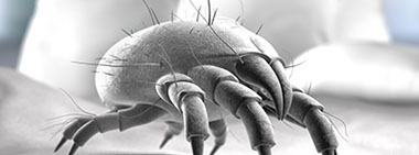 Milben sind winzig kleine spinnenähnliche Tiere. Sie sind so klein, dass man sie mit bloßem Auge nicht sehen kann. Auf dem Kopf eines Streichholzes hätten ungefähr 300 Milben Platz. Eigentlich sind diese Tierchen harmlos. Sie ernähren sich von Hautschuppen und anderen organischen Materialien, die sich im Hausstaub finden. Jedoch produzieren diese harmlosen Begleiter des Menschen eine Menge Kot. Und dieser Milbenkot, der sich in Betten, Polstern, Teppichen und im Hausstaub anreichert, ist ein potentes Allergen. Ein Allergen ist ein an sich harmloses Teilchen, dass aber an der Haut und der Schleimhaut der Atemwege eine übertrieben starke Reaktion des Immunsystems auslösen kann, die sogenannte allergische Reaktion.